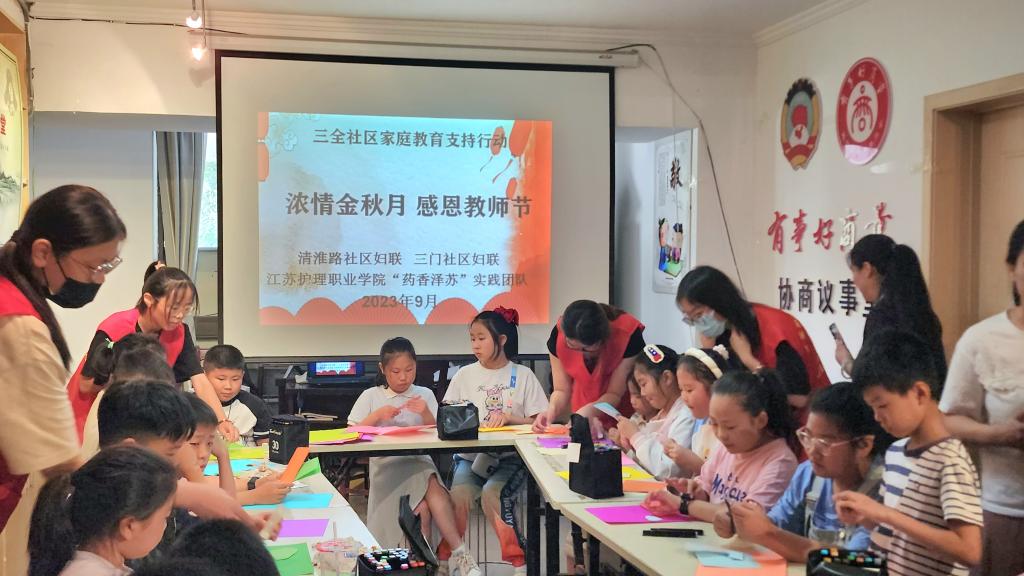 2023年9月10日是我国第39个教师节。在教师节来临之际,beat365中国官方网站中医药学院“药香泽苏”实践团队前往淮安市清江浦区清淮路社区,联合清淮路社区妇联共同开展“浓情金秋月 感恩教师节——DIY贺卡制作”活动,以此表达孩子们对老师深深的祝福。
