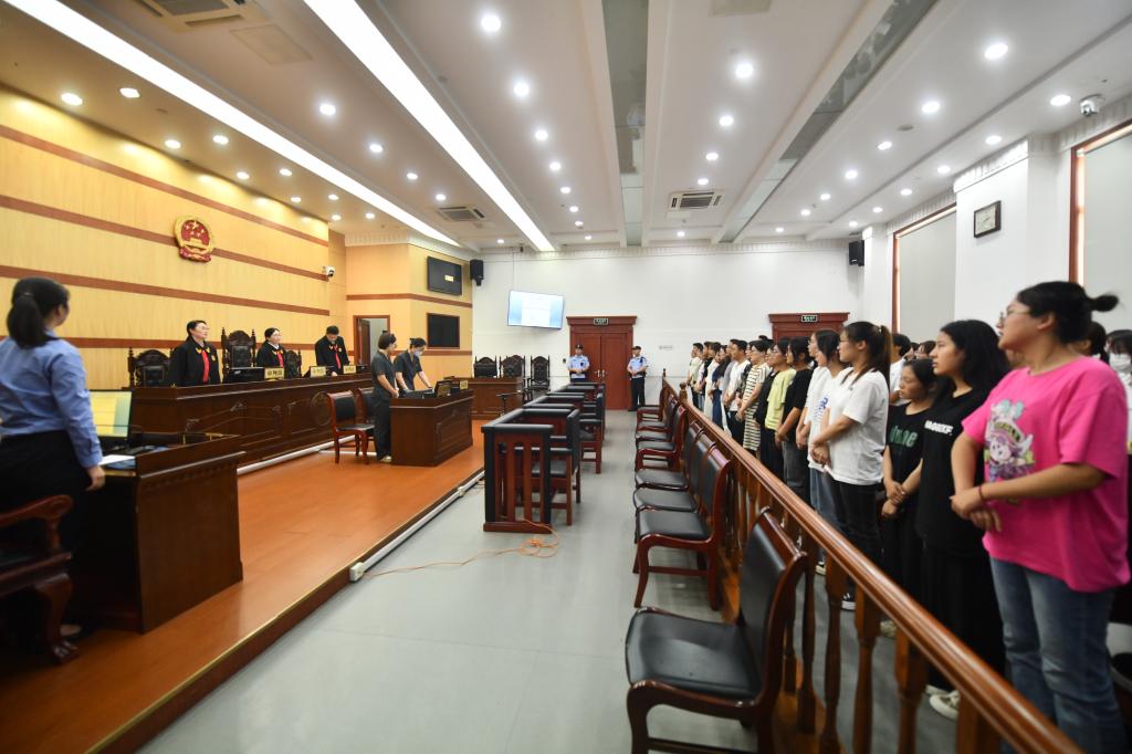 “现在开庭!”随着一声清脆的法槌声响,一起寻衅滋事案准时公开开庭审理。参与旁听的师生们零距离观看了法庭调查、法庭辩论和当事人最后陈述等庭审过程,各环节紧密衔接、规范高效,整个庭审过程庄严肃穆。师生们神情专注,认真聆听并思考,真正感受到法律的威严。本次活动通过直观生动地庭审旁听形式向同学们开展法治宣传教育,以真实案例为基础,以案释法、以例讲法、以事说法,让同学们在实践中体验法治、感受法治,经历了一场记忆深刻的普法教育,增强了依法维权和法治意识。