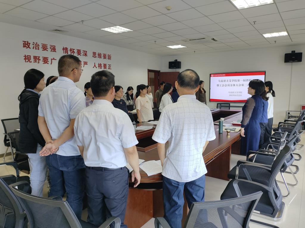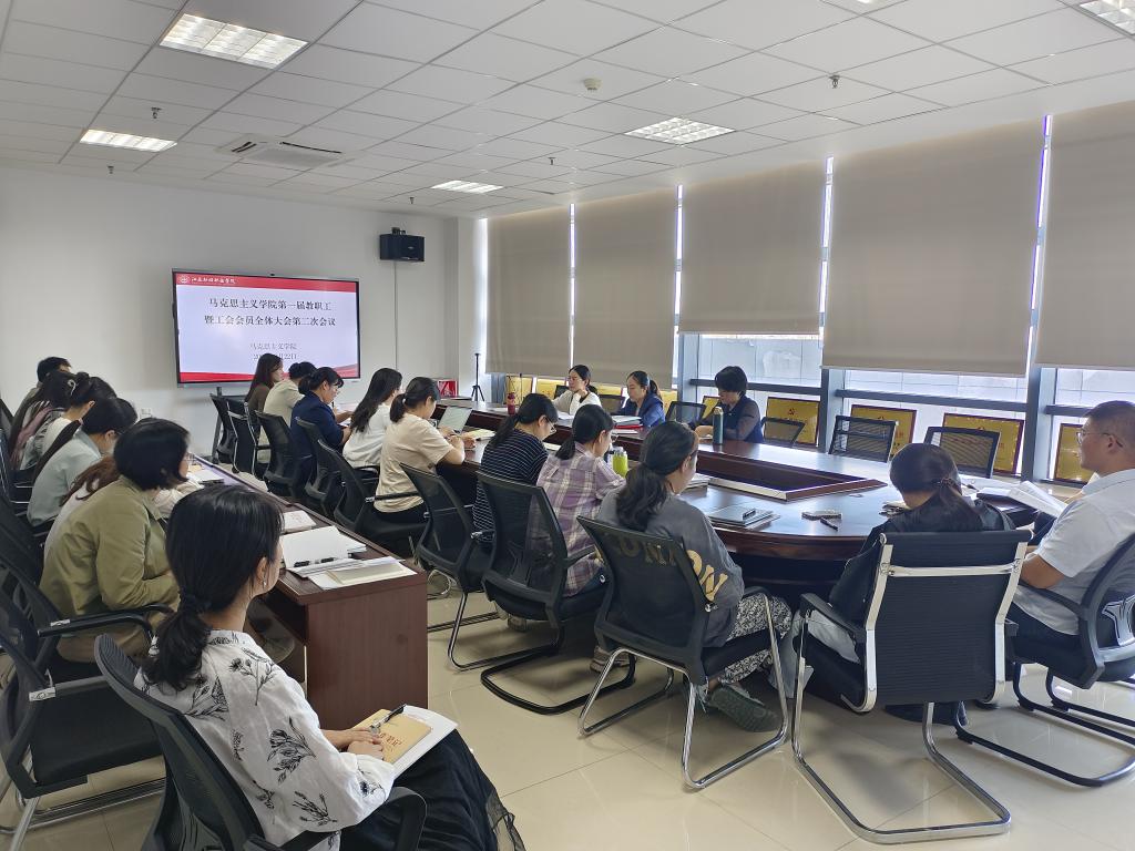9月22日上午,马克思主义学院在图书馆楼1406会议室召开第一届教职工暨工会会员全体大会第二次会议,会议由马克思主义学院副院长丁小红主持,马克思主义学院全体教职工参加。