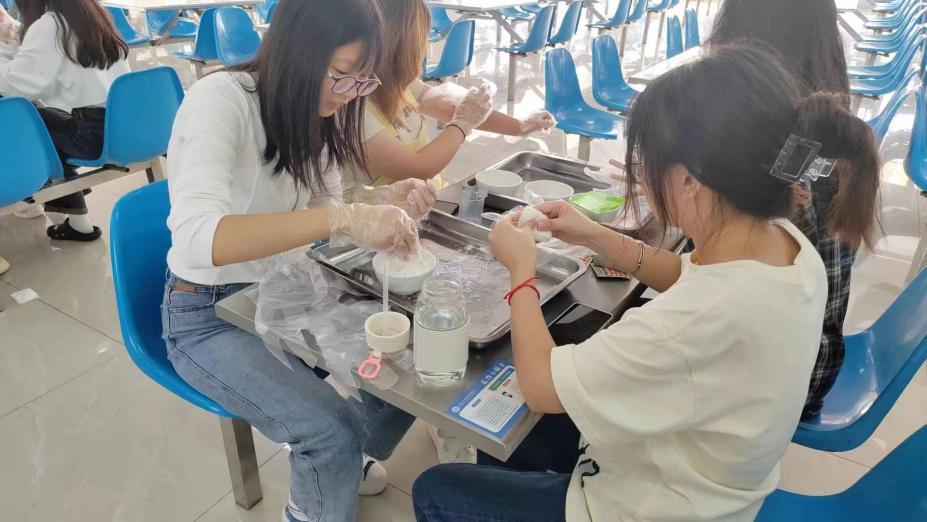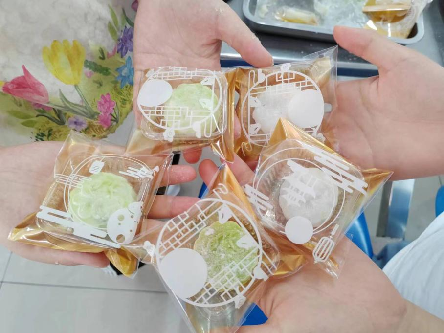 “饼”纷中秋,巧手做月饼。中秋将至,一块小小的月饼,寄托着人们对团圆的期盼。9月22日下午2点,在黄河路校区一楼食堂组织开展了手工冰皮月饼制作活动。活动现场,同学们畅谈“中秋月饼的前世今生”,聊到月饼的起源、演变,以及形态各异、口味不同的各个品类,冰皮月饼是一种制作方便、容易上手又不失美味的新型月饼。营养保健社社长寇梦洁为大家详细讲解了冰皮月饼的制作流程:揉面团、包馅、放模具内按压成型,大家跃跃欲试。在讲解完毕后,开始制作冰皮月饼。不一会儿,一个个冰清玉洁、晶莹剔透的冰皮月饼就做好了,当看到一排排精致的冰皮月饼呈现在自己面前时,大家都非常开心。
