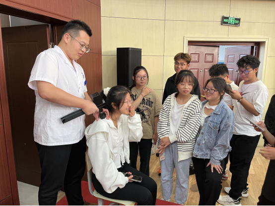 活动现场,许主任还为学生们介绍了运动康复仪器的使用并邀请学生现场体验,并就学生们提出的疑问与咨询,一一作了解答。