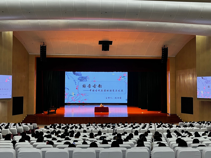 为拓宽学生艺术视野,将美育融入学生校园文化生活,公共基础部于10月18日14:00在科技路校区大礼堂举办了“美育大讲堂”系列讲座之《国乐古韵——中国古代乐器的演变与发展》。讲座由公共基础部音乐教师姚雨萌主讲。
