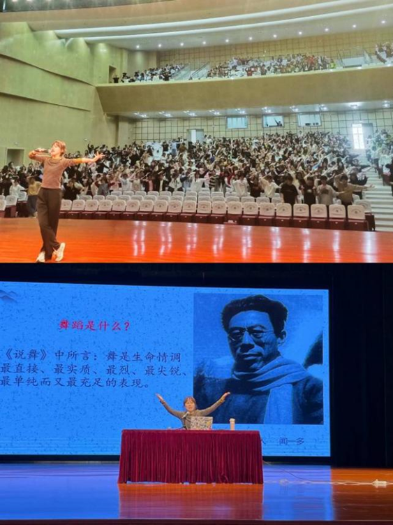 为将美育融入学生校园文化生活,拓宽学生艺术视野,公共基础部于2023年10月25日14:00在科技路校区大礼堂举办了“美育大讲堂”系列讲座之《中华舞蹈照千秋——汉唐古典舞的流风美韵》。讲座由公共基础部舞蹈教师潘馨主讲。