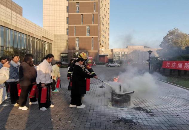 演练结束后,学生们来到安全区域开展灭火演练。通过灭火器实操,进一步熟练掌握使用灭火器的基本技能。