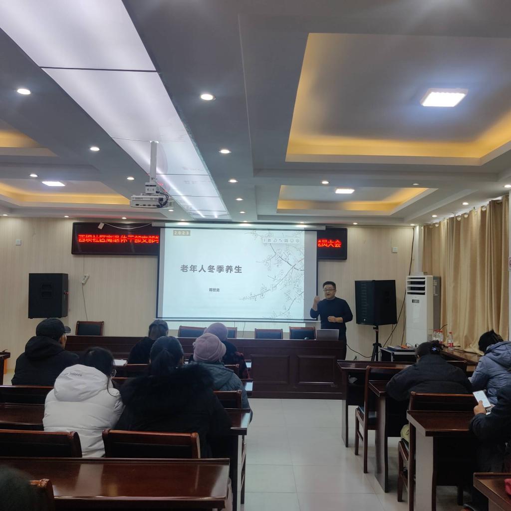 陈世龙老师首先为老年人带来了冬季养生讲座。陈老师从起居、饮食、锻炼、心情调适等方面指导老年人做好冬季养生。培训内容浅显易懂,养生办法具有日常可操作性。讲座中陈老师多次和老年人互动,确保他们听得懂、学得会、用得上。