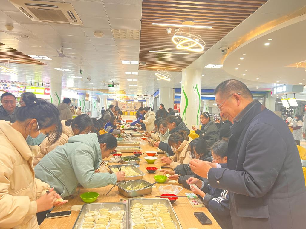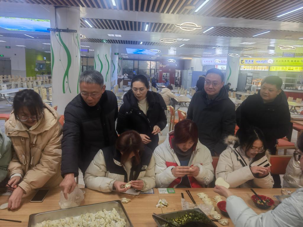 在活动现场,师生们热情高涨,争相拿出自己的绝活,一起包饺子话家常,交流学习生活情况。现场其乐融融,充满了欢声笑语。在欢乐的气氛中大家一起包好了饺子。一盘盘饺子载满沉甸甸的心意,让今年的冬至变得更加温馨。