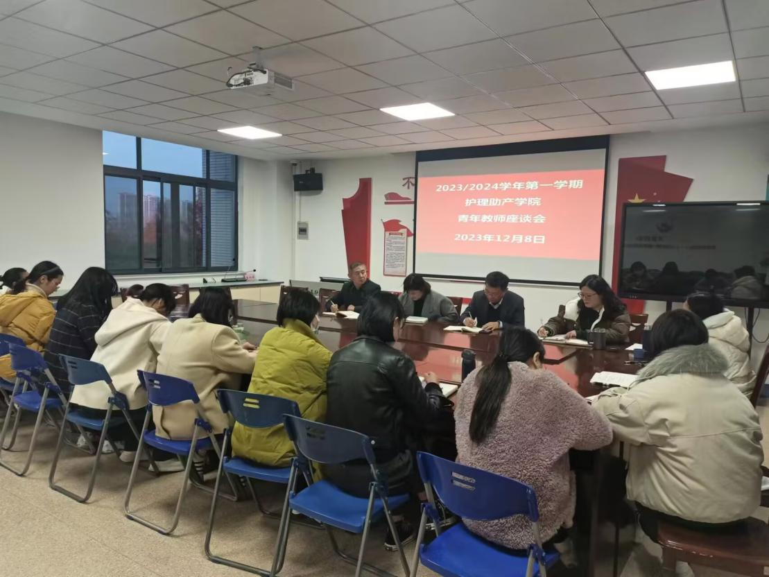 为加强与青年教师的沟通交流,促进我院青年教师的成长,12月8日下午,护理助产学院在实训楼332室召开了青年教师座谈会,护理助产学院党委书记张翠、副院长(主持)林永滔、关工委副主任周凤山、副院长潘秀以及22名学院青年教师参会。会议由学院教学督导徐玲主持。