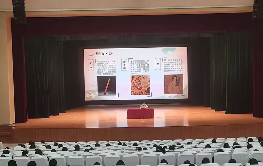 为将美育融入学生校园文化生活,拓宽学生艺术视野,公共基础部于2023年12月27日在科技路校区大礼堂开展了“美育大讲堂”系列讲座之《从长安三万里品盛唐诗乐舞之美》。讲座由音乐教师梁媛主讲。