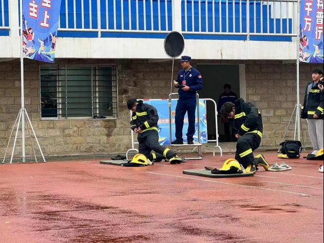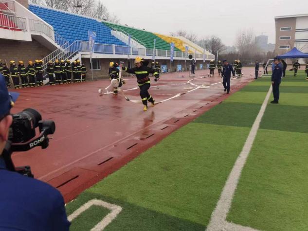赛场上,12支队伍挥洒青春汗水,尽展青春风采。在“勇往直前”“争分夺秒”“同心协力”三个竞技项目中上演了一场场精彩对决,有效检验参赛选手在单人着装、火灾扑救、消防理论知识和伤员施救等综合消防业务能力。