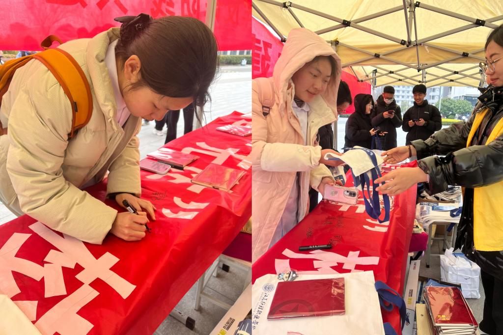 参与活动的同学在“筑牢反诈防线 共建‘无诈’校园”的横幅上签下自己的名字,并表示在建立自我防范意识的同时,也会积极向身边的朋友和家人宣传反诈知识,共同提升反诈能力,牢牢守住自己的“钱袋子”。