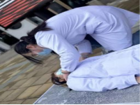 “微米”志愿者为社区群众播放急救知识科普短片,志愿者与社区工作者共同演示突发症状的急救措施:“判断环境安全,伤者是否有意识、呼吸、心跳,解开衣服,双手相扣……最后对伤者进行人文关怀。”向社区群众演示心肺复苏的过程,普及急救常识,让社区群众了解及时急救可以避免不必要的死亡,同时也大大激发了广大青年争做护佑生命的“急先锋”。