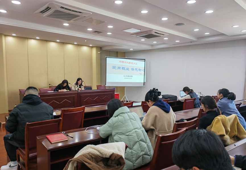 2024年3月20日下午,公共基础部召开了师德师风教育会议。会议由公共基础部党总支书记吴秋霞主持,公共基础部全体成员参加了会议。