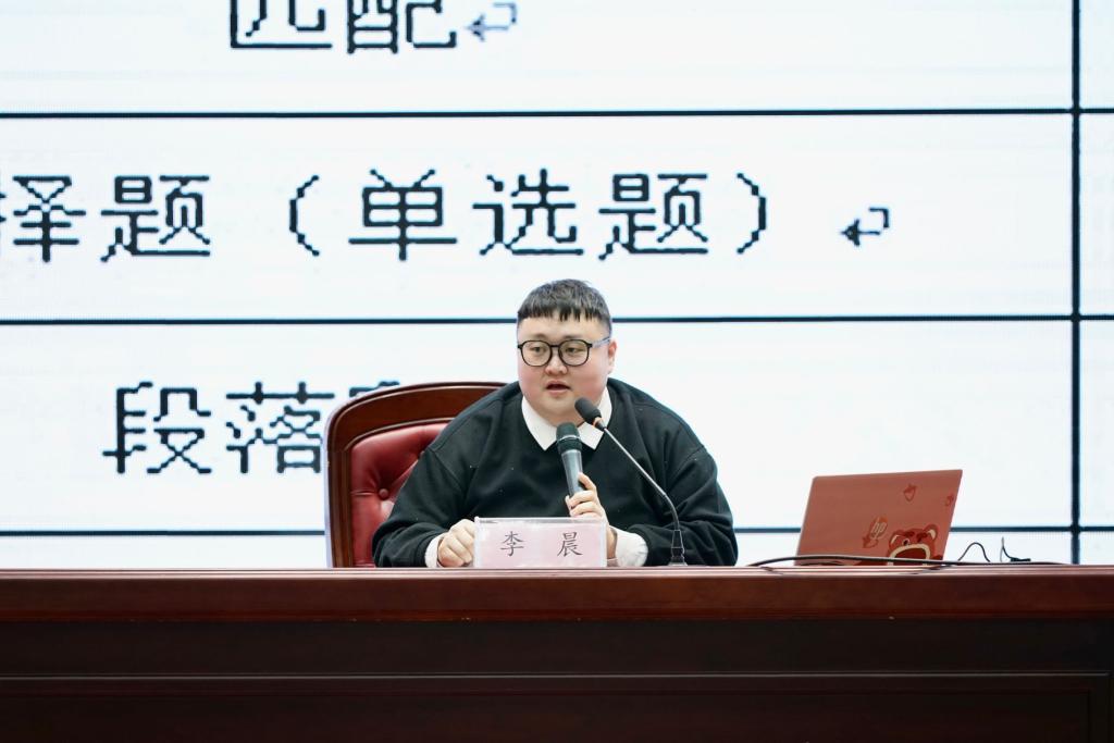 讲座中,李晨老师从试卷结构、考试流程要点、备考注意事项、考试题型等方面为同学们作了详细介绍,结合真题分享了各类题型的应试策略、经验和技巧。他着重强调词汇的基础性作用,督促同学们要脚踏实地、专心备考,并提醒大家在平时练习中一定要注意合理规划时间,保持良好心态,积极备考。最后,李老师祝愿同学们考试顺利通过,取得理想成绩。此次讲座为同学们科学备考提供了切实有效的答题策略,更加明晰了备考方向,增强了通过考试的信心。