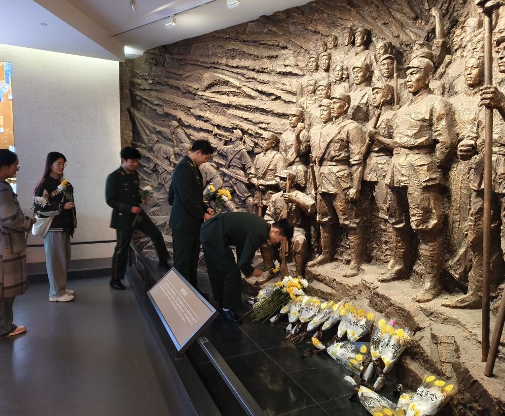 近日,护理助产学院33名退役士兵和学生军训教官怀着对先烈的崇敬之情,前往黄花塘新四军纪念馆开展“传承红色基因,铭记英烈精神”清明缅怀先烈活动。护理助产学院学工办主任张玮玮、团总支书记张磊、辅导员杜环利共同参加此次活动。