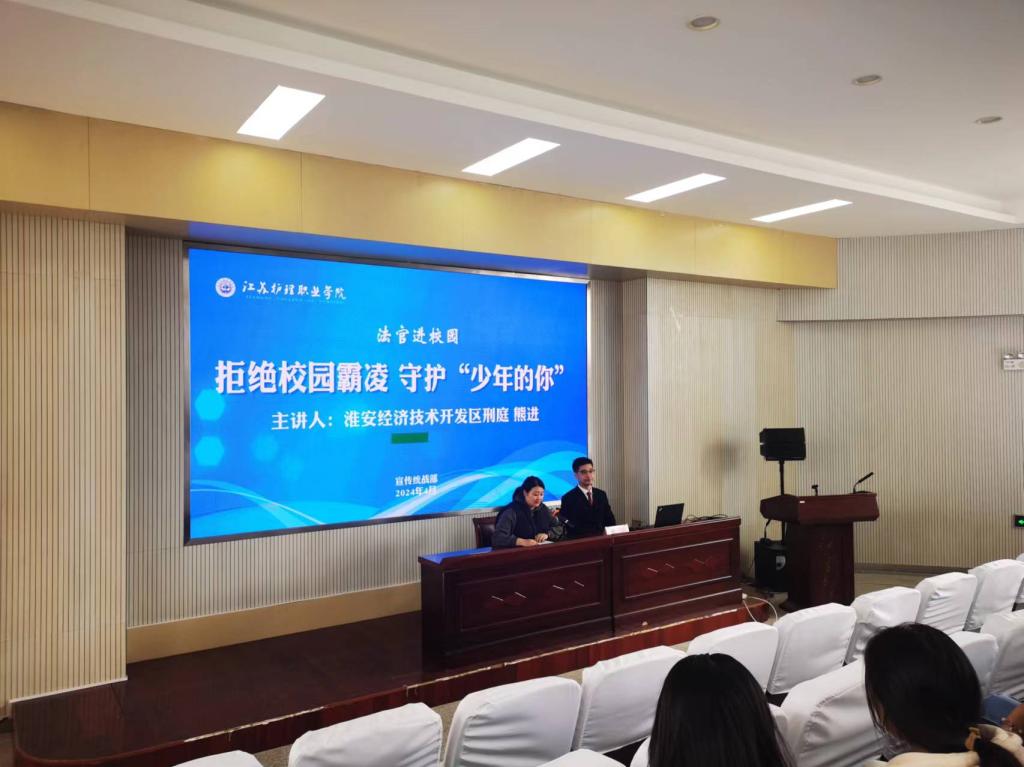 为进一步增强学生的法治意识,提高学生预防和处理校园霸凌的能力,提升学校法治宣传教育实效,4月17日,beat365中国官方网站“法官进校园”系列讲座邀请淮安经济技术开发区刑庭法官熊进作专题讲座,200余名学生参加了本次活动。