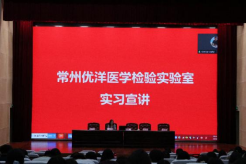 常州优洋医学检验实验室有限公司、常州国药医学检验实验室有限公司、淮安洛奇医学检验实验室、江苏鹍远生物科技股份有限公司的代表分别就各自公司的背景、实习岗位、职业发展等方面进行了详细介绍,并与现场学生进行了热烈的互动答疑。学生们积极提问,企业代表耐心解答,现场氛围热烈而融洽。