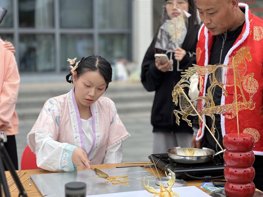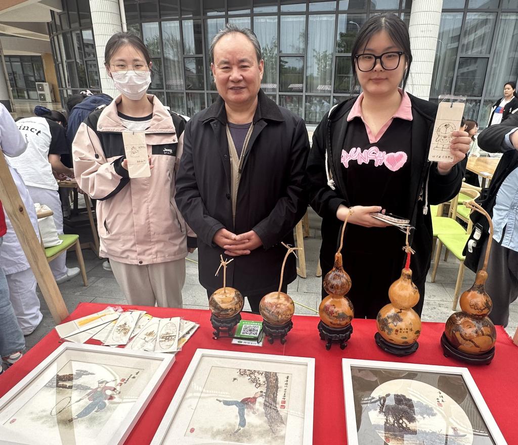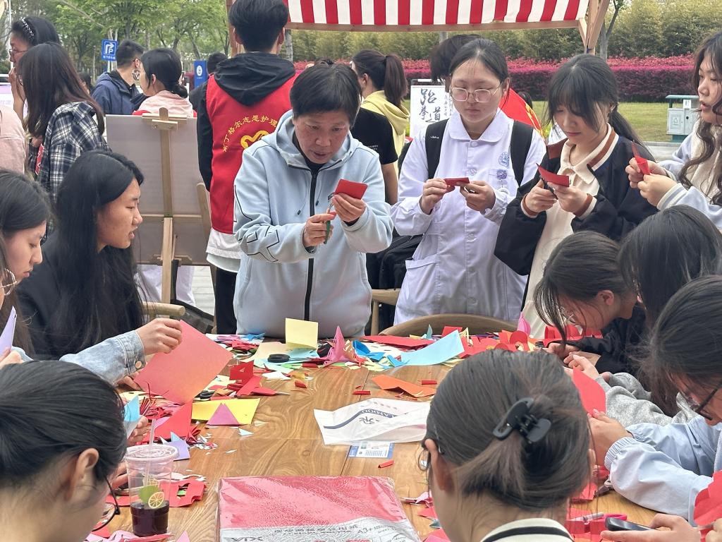 此次走进校园的来自淮安非遗项目,有糖画、传统结艺、剪纸、络铁画、钱德源绒花绒鸟技艺以及十八翻等。活动分为非遗项目展示和项目体验两个部分,旨在让参与者们通过直观的感受和沉浸式的体验,全方位地领略非遗文化的魅力。护理助产学院200多名学生热情参与。