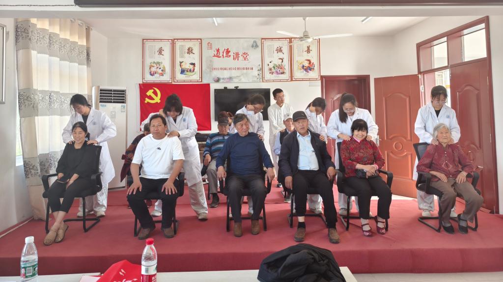 活动开始前,志愿者通过走访的方式,对村民的健康需求进行了初步了解。活动中,志愿者重点向村民宣传了中医药在康复治疗中的独特优势和应用价值。此外,志愿者还为村民提供按摩、推拿等理疗服务,并为他们讲解肩颈疾病的成因和预防保健养生知识,帮助村民养成健康的生活方式和生活习惯。活动最后,志愿者向村民展示了传统养生功法八段锦,并向村民讲解八段锦功效和锻炼方法。本次活动得到了村民们的一致好评。