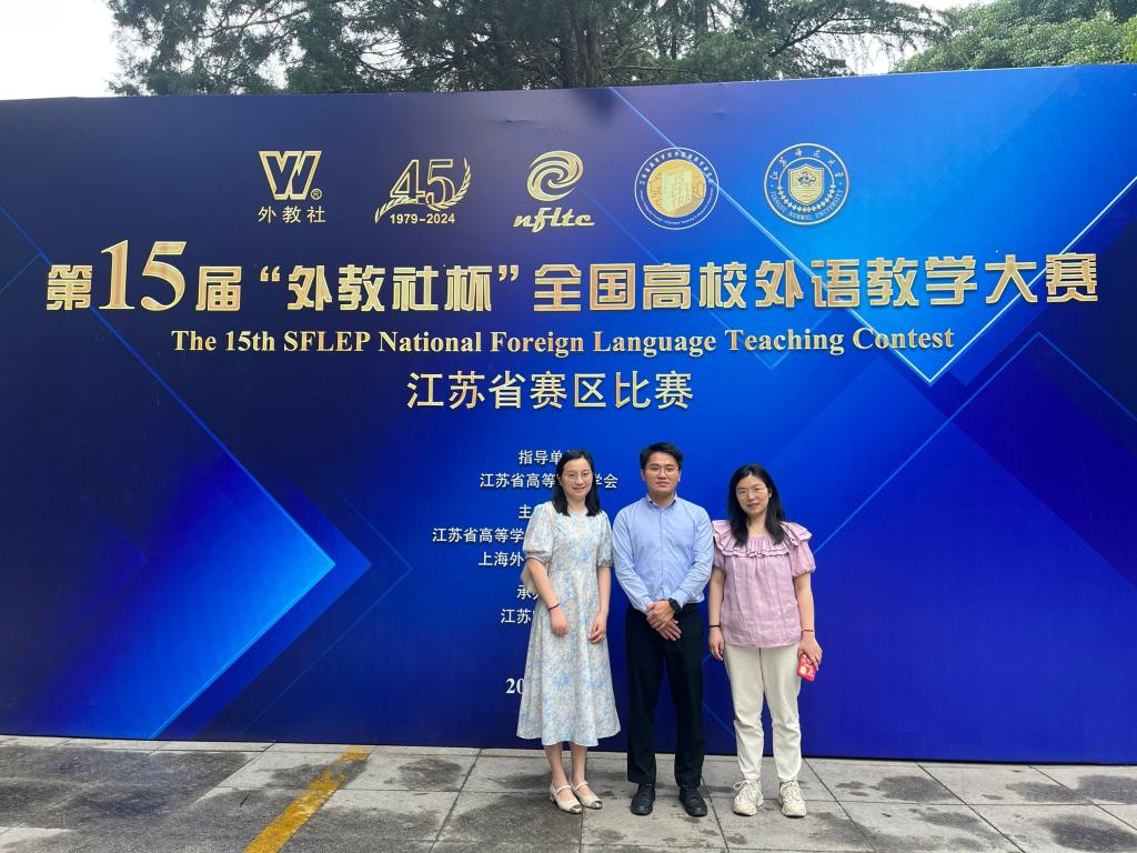 2024年5月25日-26日,第十五届“外教社杯”全国高校外语教学大赛江苏分赛区决赛在江苏师范大学圆满落幕,beat365公共基础部姚磊、朱婧、薛媛老师团队获第2名。大赛由江苏省高等教育学会指导、江苏省高等学校外国语教学研究会和上海外语教育出版社主办、江苏师范大学承办。