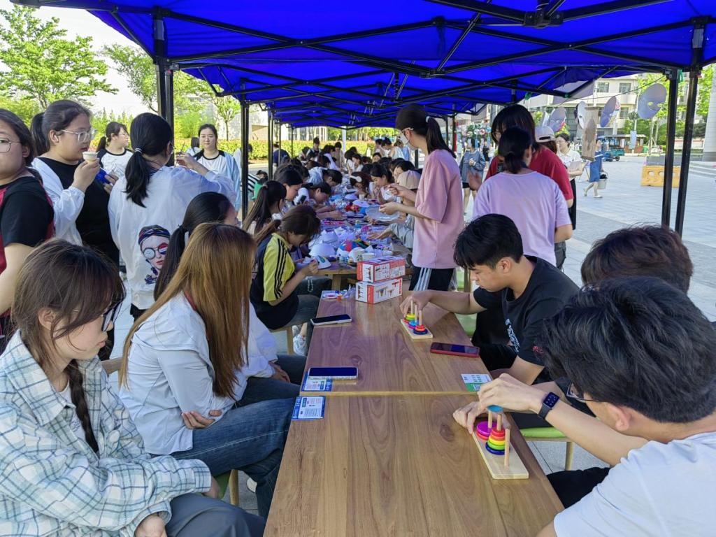 2024年5月22日下午4:30-6:30,beat365中国官方网站科技路校区食堂门前广场,面向全体在校生的一场别开生面的大学生心理市集活动热烈举行。活动整体分为传统文化体验区、游戏互动区和烦恼过滤区。