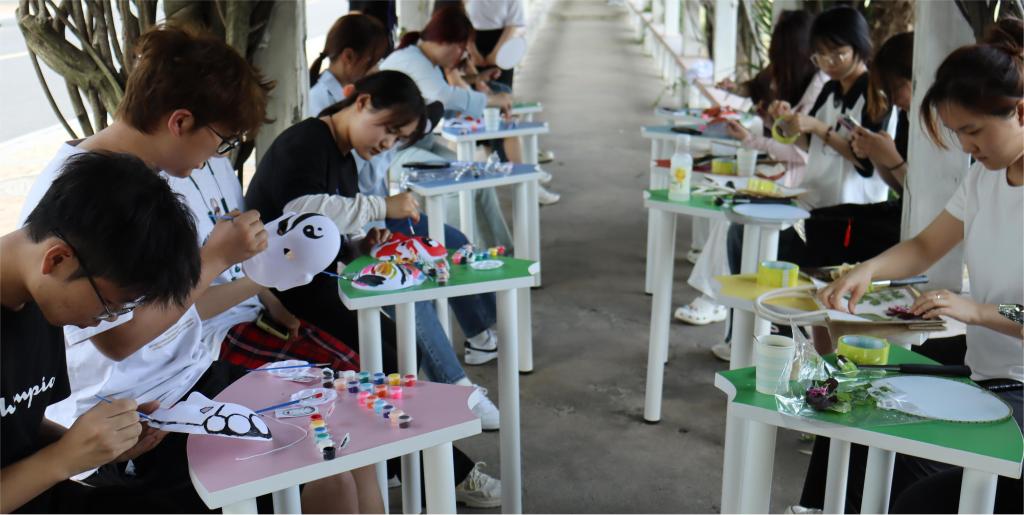 活动现场设置了京剧脸谱绘制、韵竹交织、“艺”起拓印等传统文化体验区和能量传输、有轨电车游戏互动区,吸引了大量学生参与。在传统文化体验区,同学们通过绘制脸谱、编织竹扇等体验到了传统手工艺术的魅力,在动手实践中释放了内心压力。在游戏体验区,同学们在轻松愉快的游戏氛围中增进了彼此之间的了解和信任,增强了团队协作意识。