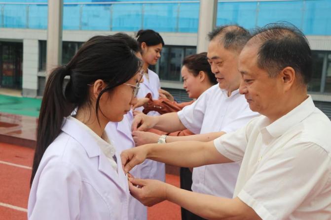 杨铤向宣誓的4名预备党员表示衷心祝贺,并希望每一名党员铭记这神圣的一刻,用实际行动来践行诺言,在今后实习和工作中真正发挥先锋模范作用,为中国医药卫生事业作出贡献,向党组织交出一份满意的答卷。4名预备党员坚定地表示:以实际行动践行初心使命,以青春之我挺膺担当,为实现中华民族伟大复兴的中国梦不懈奋斗!