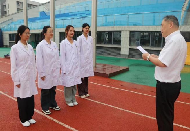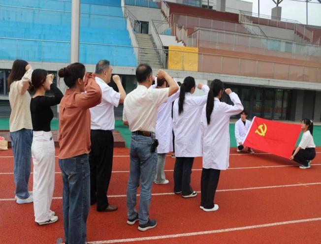 为进一步加强新发展党员的党性修养,5月30日,医学技术学院机关(学生)党支部于学校操场举行2024年上半年新发展党员宣誓仪式。医学技术学院院长邵启祥、医学技术学院关工委主任杨铤、学工办主任陈颖、医学技术学院机关(学生)党支部全体成员以及4名新发展预备党员参加本次活动。