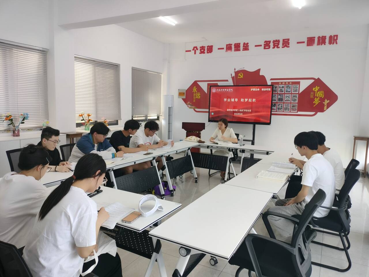 在期末考试来临之际,为提升学习质量,帮助有学习困惑的学生增强对《免疫学检验》课程的掌握程度,近日,医学技术学院“一站式”学生社区开展了“学业辅导 助梦起航”活动。活动中专任教师张苗为同学们答疑解惑,查漏补缺。共10名学生参加活动。