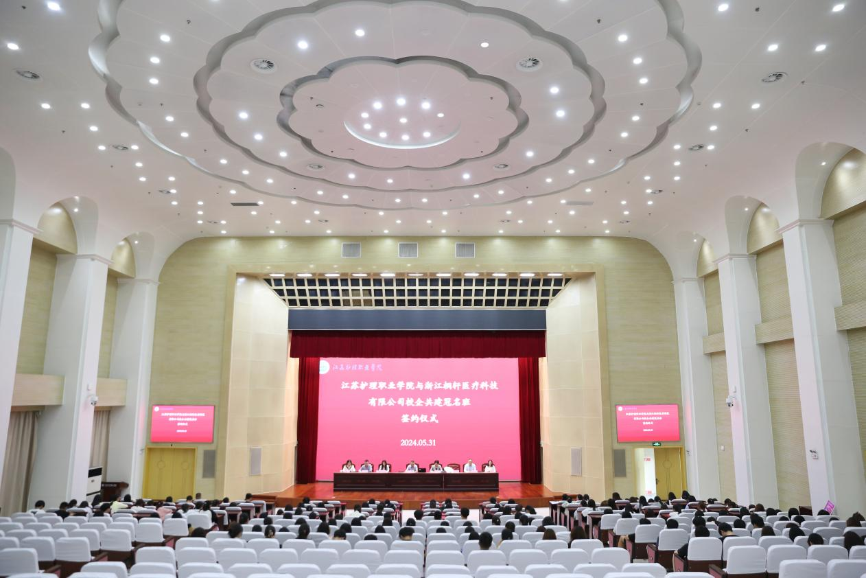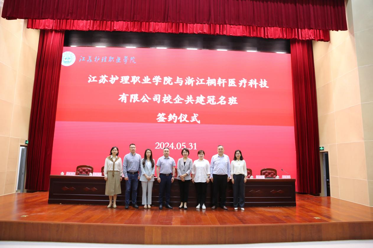 为进一步深化产教融合,拓宽校企合作渠道,创新人才培养模式,发挥专业服务社会功能,2024年5月31日,医学技术学院、护理助产学院联合在学术报告厅举办桐轩冠名班签约仪式暨校友分享会。浙江桐轩医疗科技有限公司董事长沈坤、副总经理尹笑雪、桐轩(杭州)医疗科技有限公司总经理马永生和beat365中国官方网站合作办学处处长徐琳、护理助产学院党总支书记张翠、副院长汤春菊、医学技术学院党总支副书记杨铤、副院长许国莹等相关领导以及2023级护理专业和医学检验专业部分学生代表参加了此次活动,活动由许国莹主持。