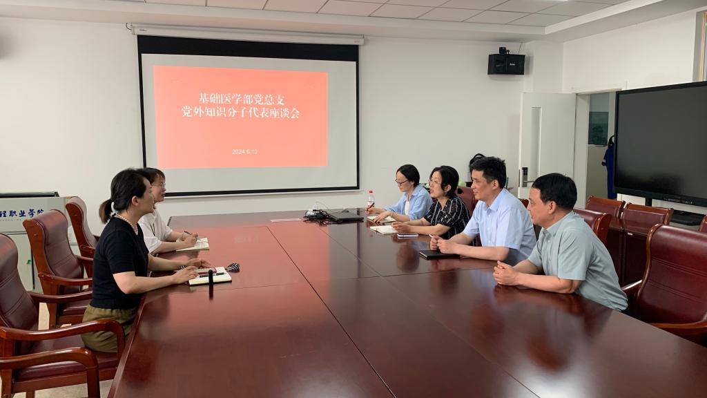 近日,基础医学部党总支召开党外知识分子代表座谈会,旨在统一思想、凝聚共识、汇聚力量,更好地发挥党外知识分子在学校发展中的积极作用。基础医学部党总支书记梁珣,统战委员陈培,基础医学部党外知识分子代表参加了座谈。会议由梁珣主持。
