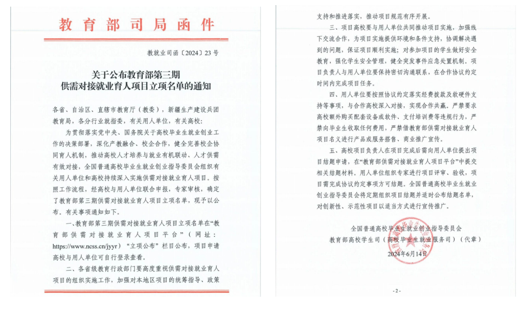 近日,教育部高校学生司公布第三期供需对接就业育人项目立项名单,beat365医学美容技术专业“重点群体就业帮扶”就业育人项目获批立项。