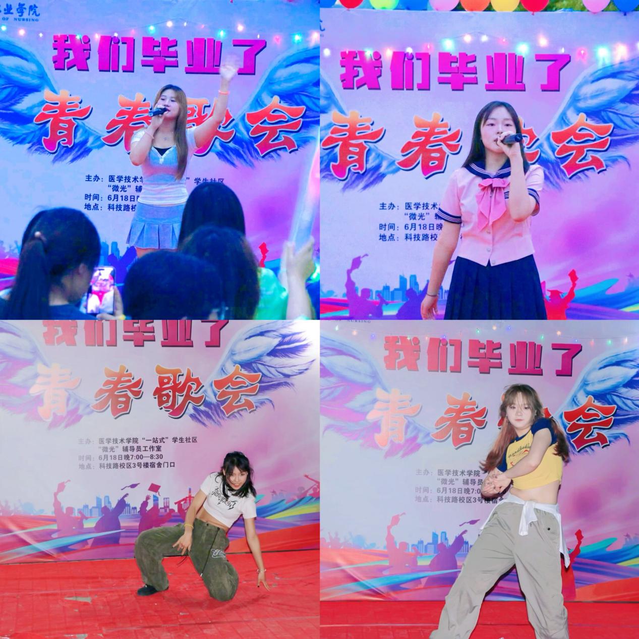 青春的邂逅是为了遇见更好的自己。为欢送2024届毕业生,为新篇章的开启许下美好祝愿,6月18日晚7:00—8:30,医学技术学院“一站式”学生社区和“微光”辅导员工作室在科技路校区3号宿舍楼前开展“我们毕业了”青春歌会活动。全体毕业生和班主任、辅导员老师参加活动。