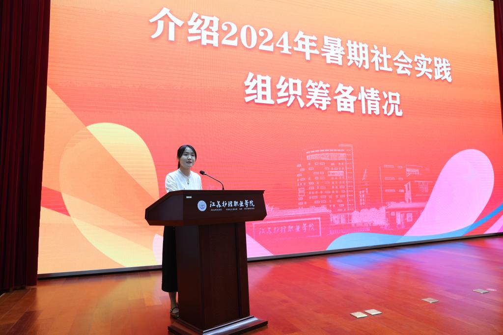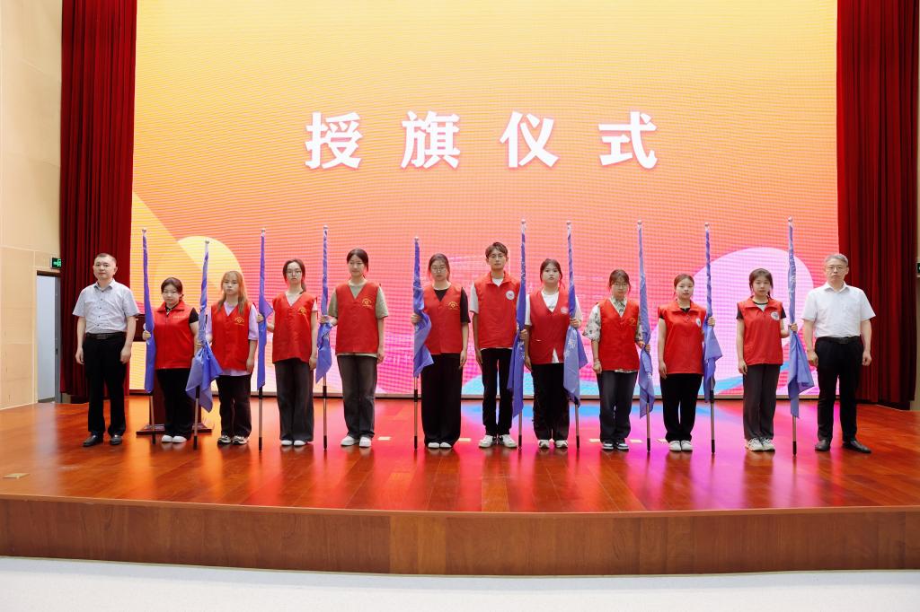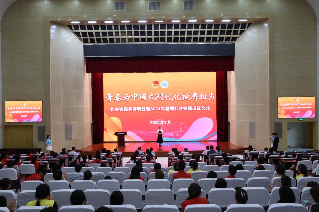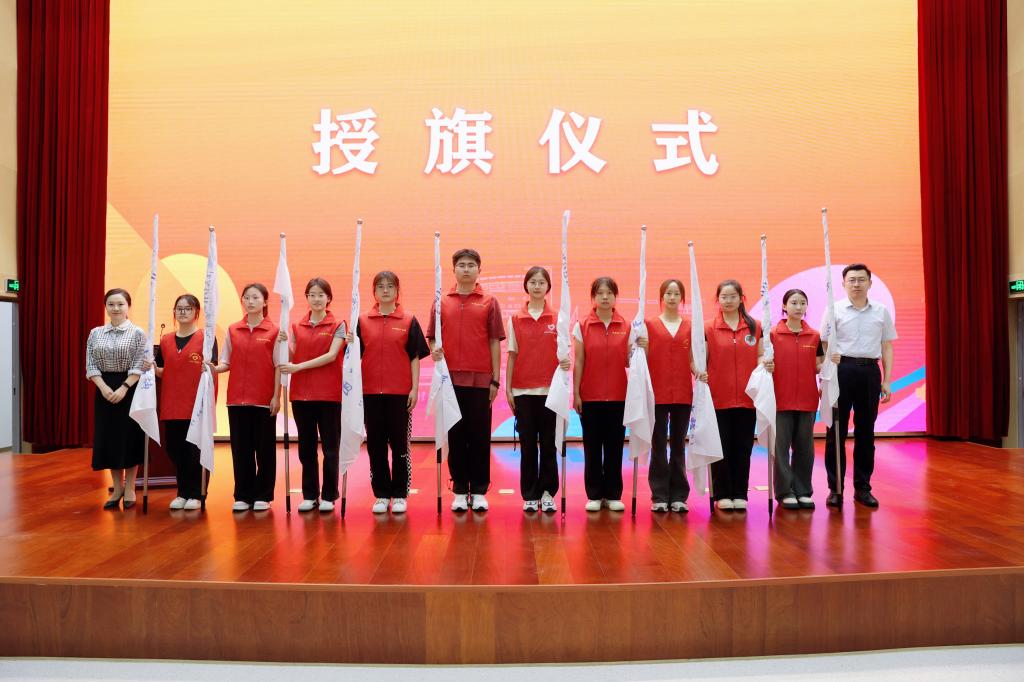 日前,校团委在科技路校区举行“青春为中国式现代化挺膺担当”社会实践导师聘任暨2024年暑期社会实践出征仪式。学校党委副书记胡海员,共青团淮安市委副书记朱莎莎,学校党委委员、组织部部长夏前正,学校党委委员、宣传统战部部长朱郁草,团淮阴区委、团金湖县委、市卫健委团工委、淮阴区营中社区党委负责人,市委社会工作部、团市委、市红十字会相关工作负责人,学校相关职能部门负责人、各二级学院党组织副书记、全校专兼职团干部、实践队指导老师和三百多名学生代表参加活动。