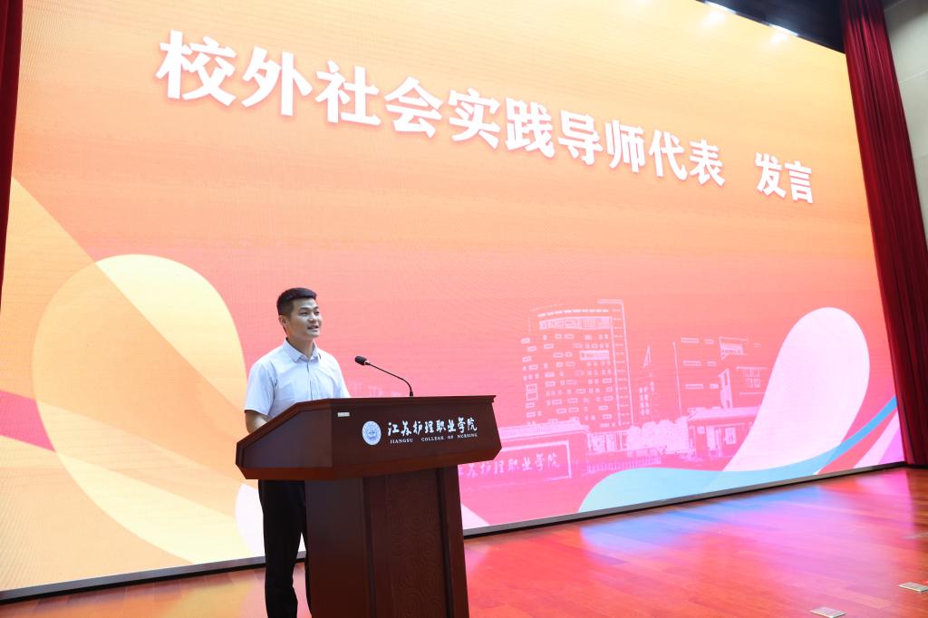 仪式上,学校团委书记童申介绍了学校2024年暑期社会实践活动组织情况。校外社会实践导师代表淮阴区营中社区党委书记张越作了交流发言。志愿者代表“急救先锋 博爱万家”志愿服务项目负责人邱筱同学分享了实践规划并作表态发言。胡海员为校外社会实践导师颁发聘书,与会领导为实践队授旗。出征仪式在“让青春为中国式现代化挺膺担当”的铮铮誓言中落下帷幕。