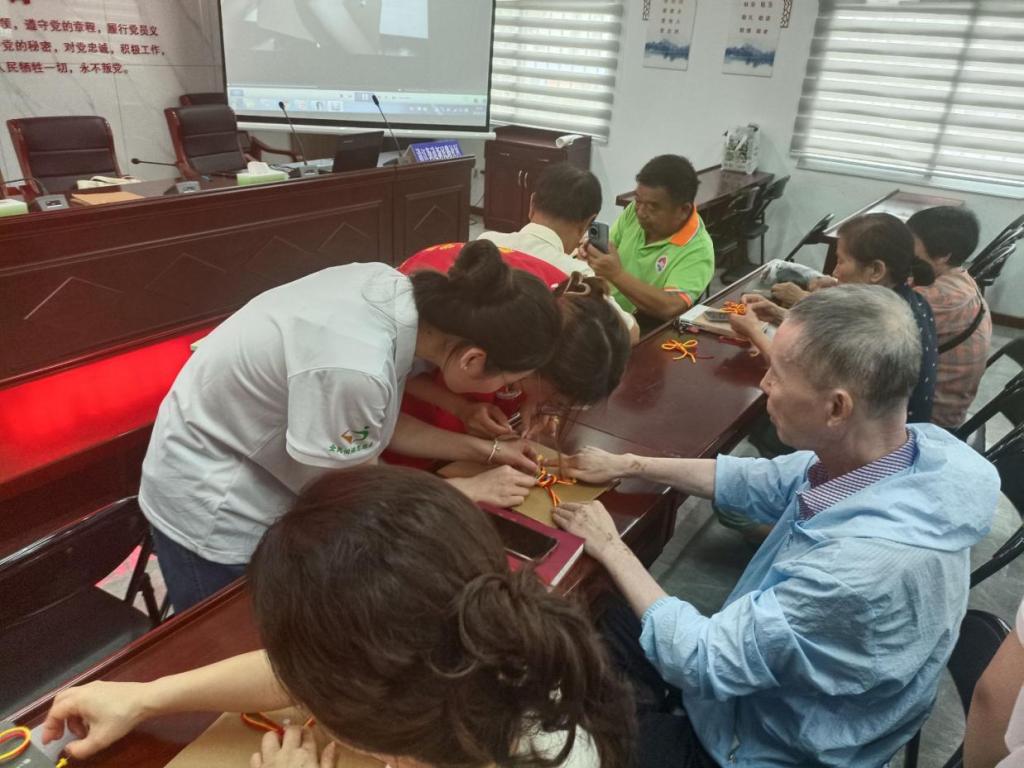 本次活动的第一个环节为红色书籍品读与交流分享。志愿者与参加活动的老党员共同阅读红色书籍,并积极分享心得体会,在经典阅读中感悟红色精神。第二环节为知识竞赛,通过提问红色故事和中国古诗词等内容,激发大家阅读的兴趣。活动最后,志愿者与党员们一起手工制作中国结等小物件。