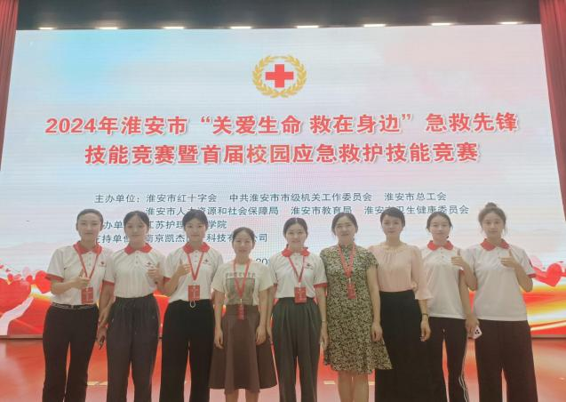 学生选手魏思佳、王子萱、王虹、常毅青、吴艺池在各个单项竞赛中奋勇拼搏,共获得一等奖4项、二等奖3项、三等奖2项,并共同被授予“淮安市红十字应急救护能手”称号。