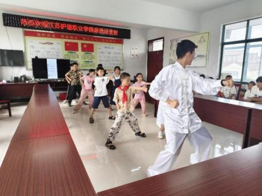 7月5日,志愿者前往涟水县高沟镇新农村党群服务中心,向小朋友们讲解了心肺复苏、创伤处理、海姆立克等急救内容,为了弘扬中医药传统文化,志愿者还带领小朋友学习了养生气功八段锦和按摩保健手法,加深了他们对中医药文化的认识。