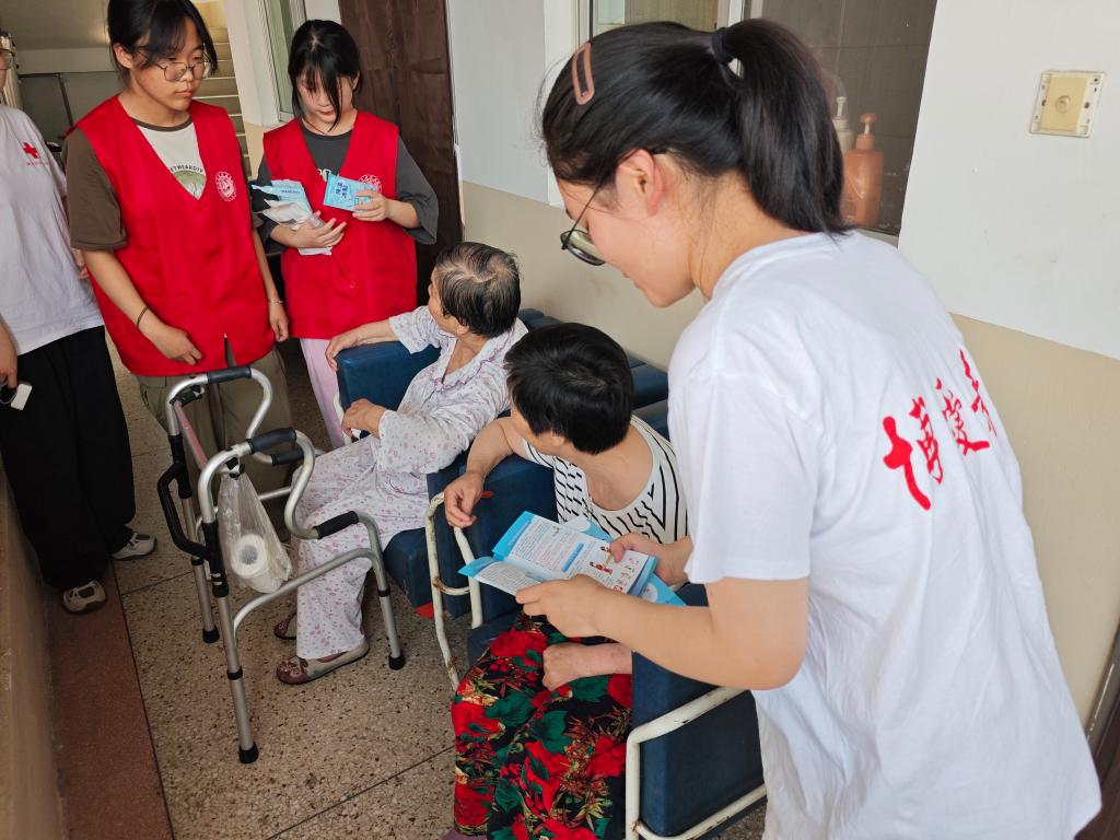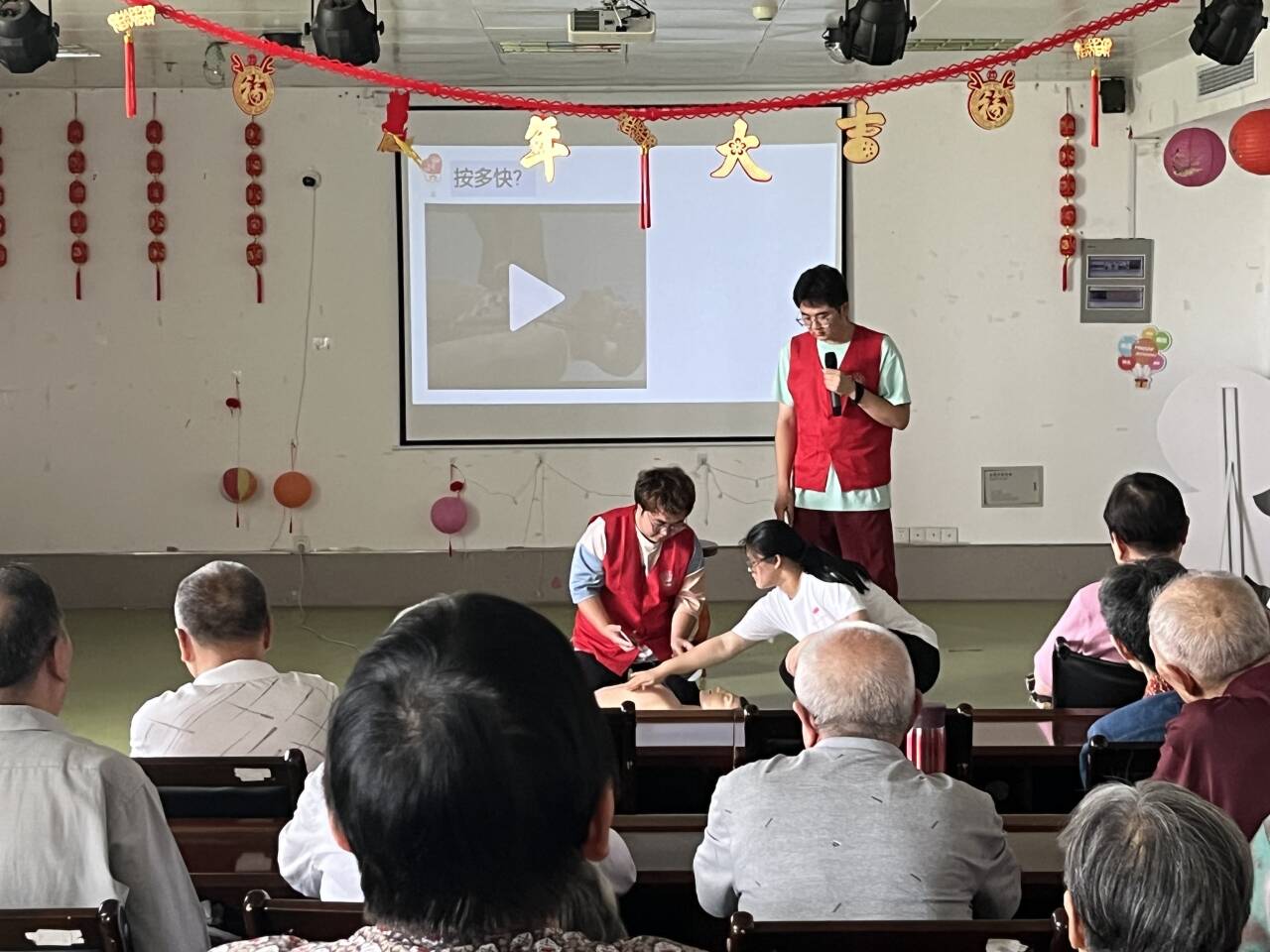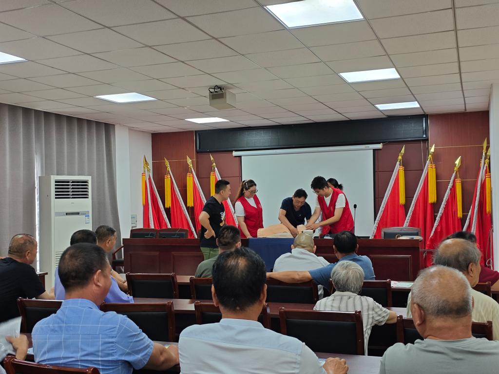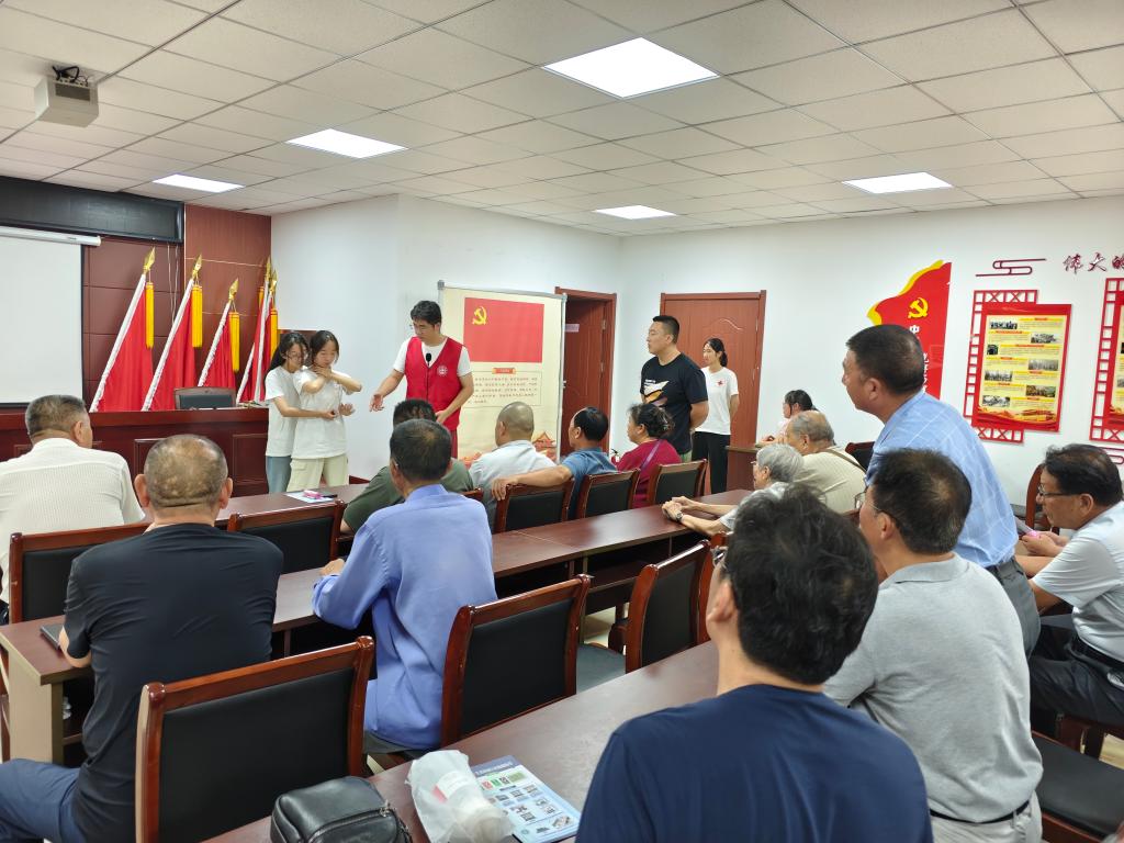 护“老”健康。随着老龄化社会的加速到来,老年公寓、敬老院成为了众多长者安享晚年的温馨家园。为提高敬老院员工和老人的自救互救能力,志愿者们走进四季青老年公寓、乐慈敬老院开展急救知识培训,全面普及急救知识和急救技能,为老年人筑起一道坚实的生命防线。志愿者们认真细致地为工作人员及老人讲解心肺复苏的重要性以及判断标准、操作标准及注意事项,同时利用仿真人体模型,演示如何判断患者是否有意识、呼吸及心跳,实施胸外按压时如何正确定位、如何按压才能达到有效循环,人工呼吸时如何清理口腔杂物、正确打开气道等,通过理论讲解和实践操作相结合的方式,帮助他们正确掌握相关急救技能。