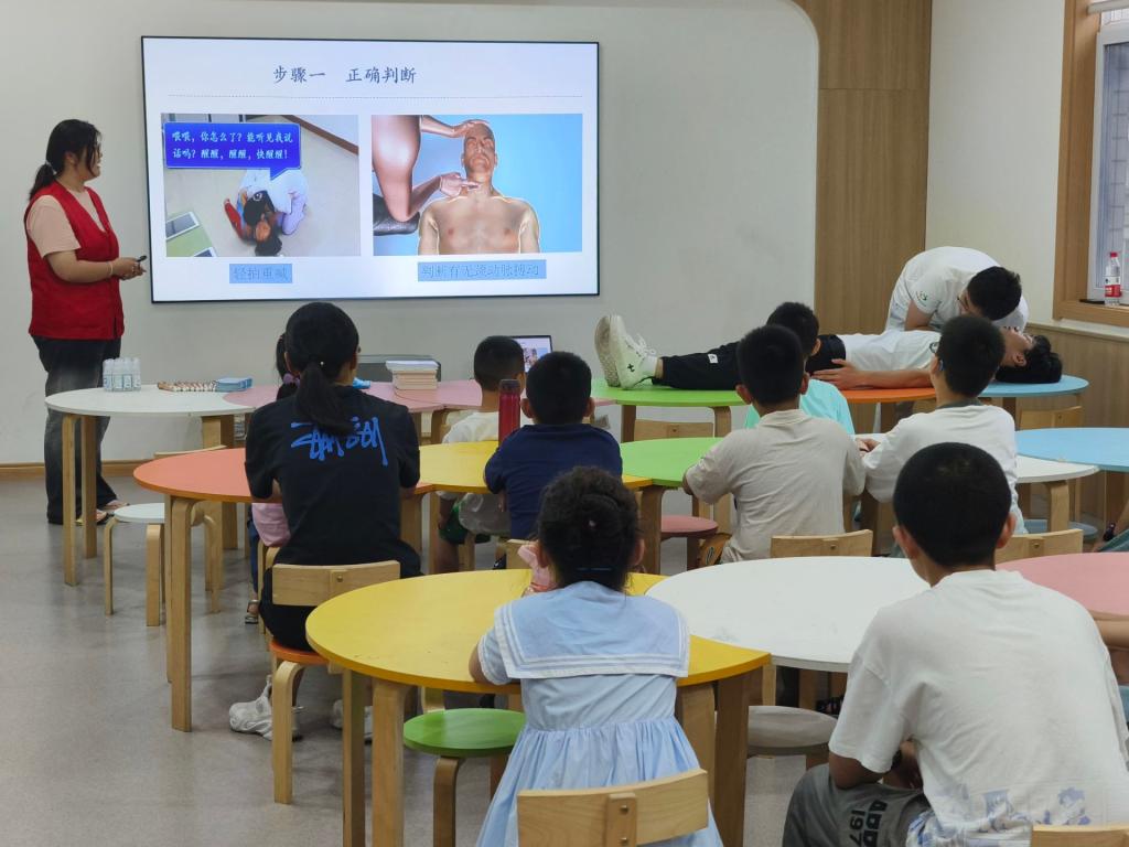 “阅”有守护。暑期热潮中,图书馆以其独特的魅力,成为了青少年避暑学习的热门地。为进一步提升青少年读者的安全意识,确保暑期安全,志愿者们来到淮安市少儿图书馆、融创钟书阁,从发烧发热、擦伤、磕碰摔伤、扭伤、砸伤或挤压伤、流鼻血、噎食或吞咽异物、中暑等日常生活中常见的意外伤害入手,为小朋友和家长详细讲解了应急处置相关知识。“有人倒地怎么办?”“急救电话怎么打?”“紧急情况怎么呼救?”现场采用互动式、引导式的教学方法,让小朋友学习如何判断人的意识和呼吸状况、如何进行有效的胸外按压等实用应急救护知识与技能,小朋友们踊跃参加现场实际操作练习,在志愿者的指导下很快掌握了心肺复苏、海姆立克急救法的基本操作和要领,安全意识和急救能力得到进一步提高。