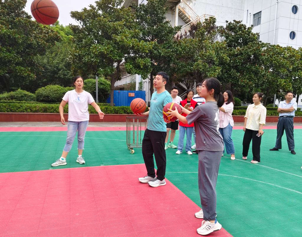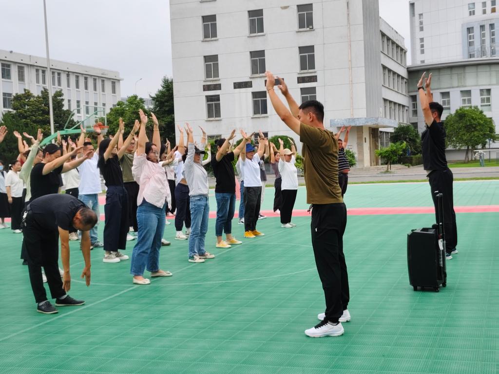 活动开始前,志愿者向参赛选手们科普心肺复苏法、运动前后保健事项以及必要的急救知识,强化安全意识。随后,体育老师带领选手们进行赛前热身。