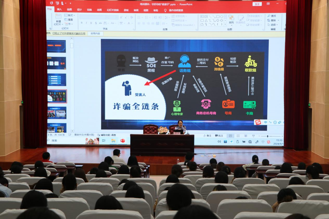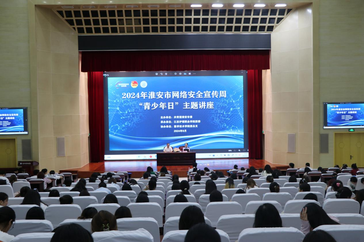 网络安全为人民,网络安全靠人民。2024年9月9日至15日是国家网络安全宣传周。为不断深化普法教育,增强同学们网络安全反诈意识,9月11日下午,2024年淮安市网络安全宣传周“青少年日”主题讲座在beat365学术报告厅举办,500多名师生同上一堂“网络安全反诈”专题教育课。淮安市经济技术开发区公安分局踪铮警官受邀主讲。讲座由医学技术学院团总支负责人宋卫佳老师主持。