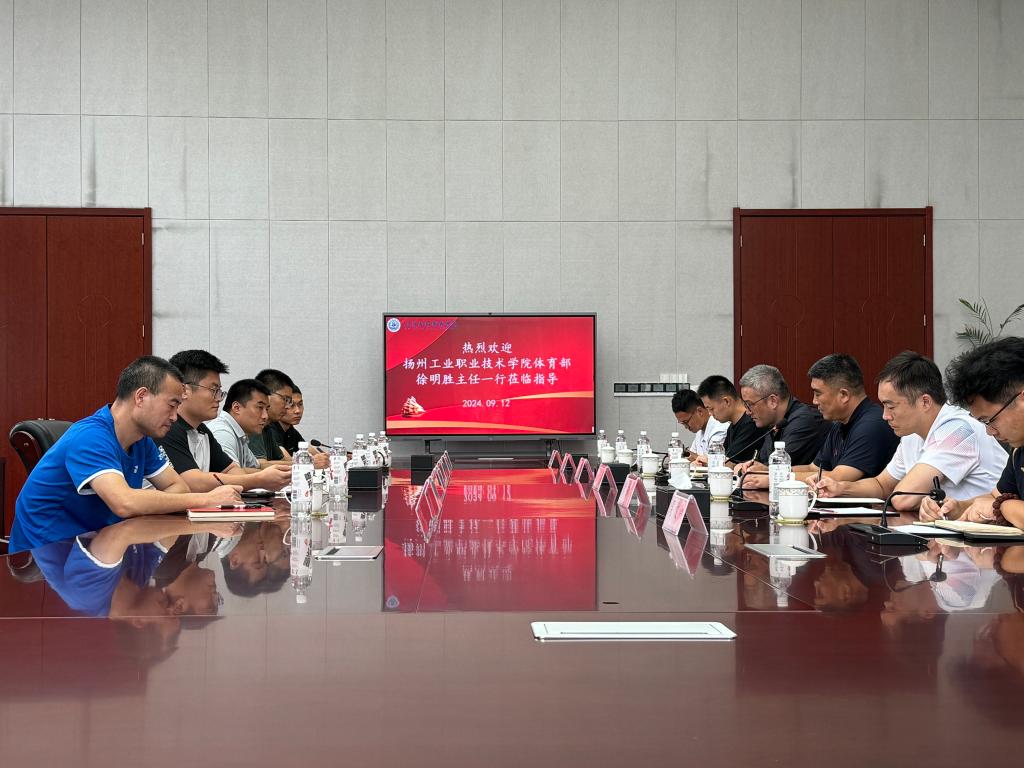 9月12日,扬州工业职业技术学院体育部主任徐明胜率队到beat365调研学校体育工作。beat365体育部副部长李伟、综合办主任卢金邦、教学办主任裴桐、体育教研室主任生守程、教学督导李小林参加调研交流活动。