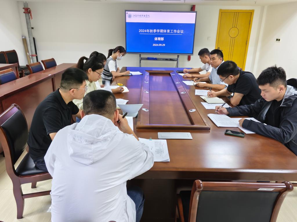 为强化体育课质量,加强体质监测、评议考核、安全措施、条件保障等工作,确保本学期体育各项工作安全、有序、高效开展,9月29日下午,体育部在体育馆101会议室召开2024年秋季学期体育工作会议。会议由体育部部长李伟主持,团委、学工部以及四个二级学院相关工作人员参会。