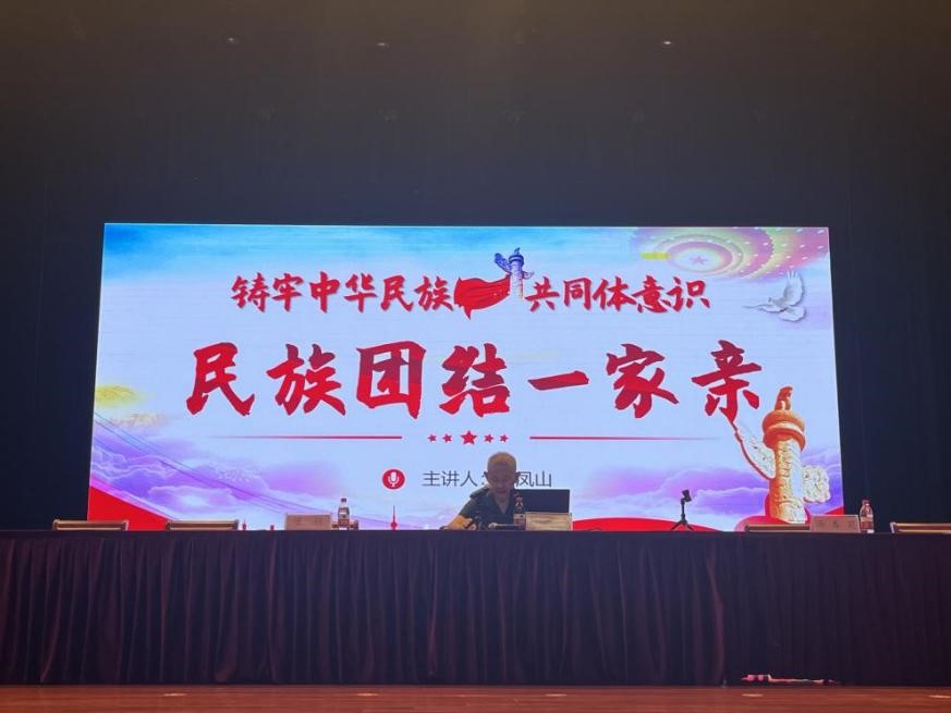 周凤山为新生们作题为“铸牢中华民族共同体意识 民族团结一家亲”的专题讲座。讲座从“我国是统一的多民族国家,民族团结是各族人民的生命线”“我国正处于实现中华民族伟大复兴的关键时期”“做好新时代党的民族工作,铸牢中华民族共同体意识”“只有民族团结,民族复兴的伟大梦想才能顺利实现”四个方面展开,深入阐述了中华民族多元一体的历史进程,强调了各民族团结一致,共同奋斗的光辉传统。他指出,学生们在掌握过硬的专业技能的同时,还要具备强烈的民族团结意识,弘扬中华文化,尊重和包容不同民族的文化传统。
