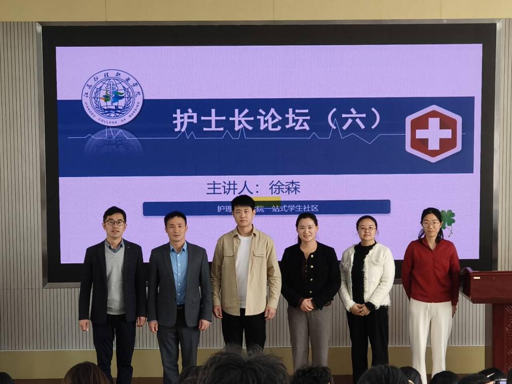 护理助产学院“一站式”学生社区“护士长论坛”第六讲于10月23日下午在教学楼圆阶2室举行,本期主讲嘉宾为江阴市人民医院主管护师徐森。党委学生工作部副部长许步亮、护理助产学院党委副书记陈颖出席。
