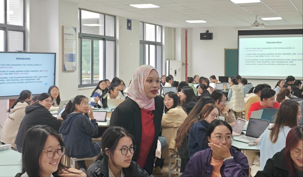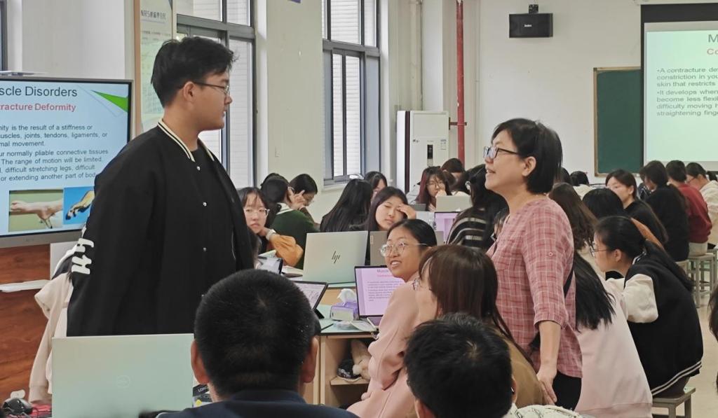 学生们对外方课程提出了多样的感受。合作办学1班的陈慧玲同学说:“中外合作办学的课程让我们的英语水平得到了提升,大家可以在双语环境中更好了解国际护理理念,提高综合素质。”合作办学2班的鲍雅洁同学表示:“教授的教学形式多样化且注重实践,教授带领我们通过案例分析、角色扮演等方式,让知识更加容易理解和掌握。教授们和蔼亲切,常常走下讲台与同学们互动,她们专业知识扎实深厚,将丰富的临床经验融入教学,使内容更具实用性。”同学们相信,在外方教授的带领下,能激发他们学习英语的热情,提高了解国际化知识的兴趣,强化专业能力、拓宽国际视野,为未来护理专业知识的学习和工作实践夯实基础。