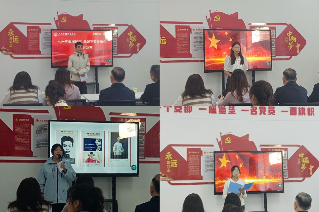 今年是中华人民共和国成立75周年。为进一步激发全体师生的爱国热情,增强历史使命感和责任感,10月30日下午,医学技术学院“一站式”学生社区、机关(学生)党支部、教师党支部、团总支共同开展“七十五载同风雨 赤诚不变爱国心”主题党日活动。我院对接社区领导、校党委宣传统战部部长朱郁草、院党总支副书记杨海涛、综合办主任朱玲、教学办主任闫梦丹、辅导员宁艳纳、张钰担任评委,全体党员和学生代表参加活动。