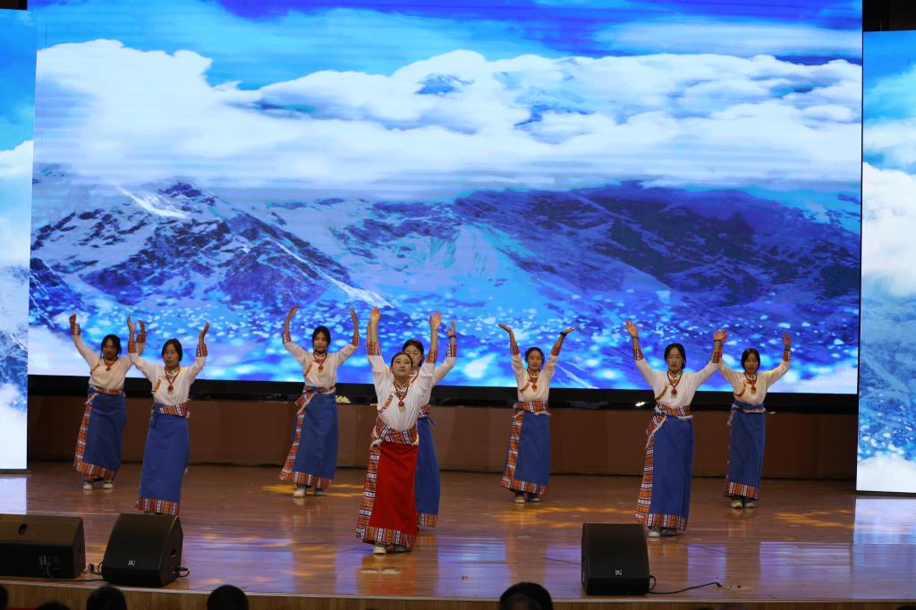 活动中,中医药学院学子表演的诗朗诵《盛开的民族团结之花》,使观众体会到各民族血浓于水的情谊,感受到中华民族大家庭的温暖与力量。此外,我院藏族同学带来的舞蹈《籽籽同心一家亲》,让现场观众在优美舞姿里领略到深厚民族情谊和团结互助精神。