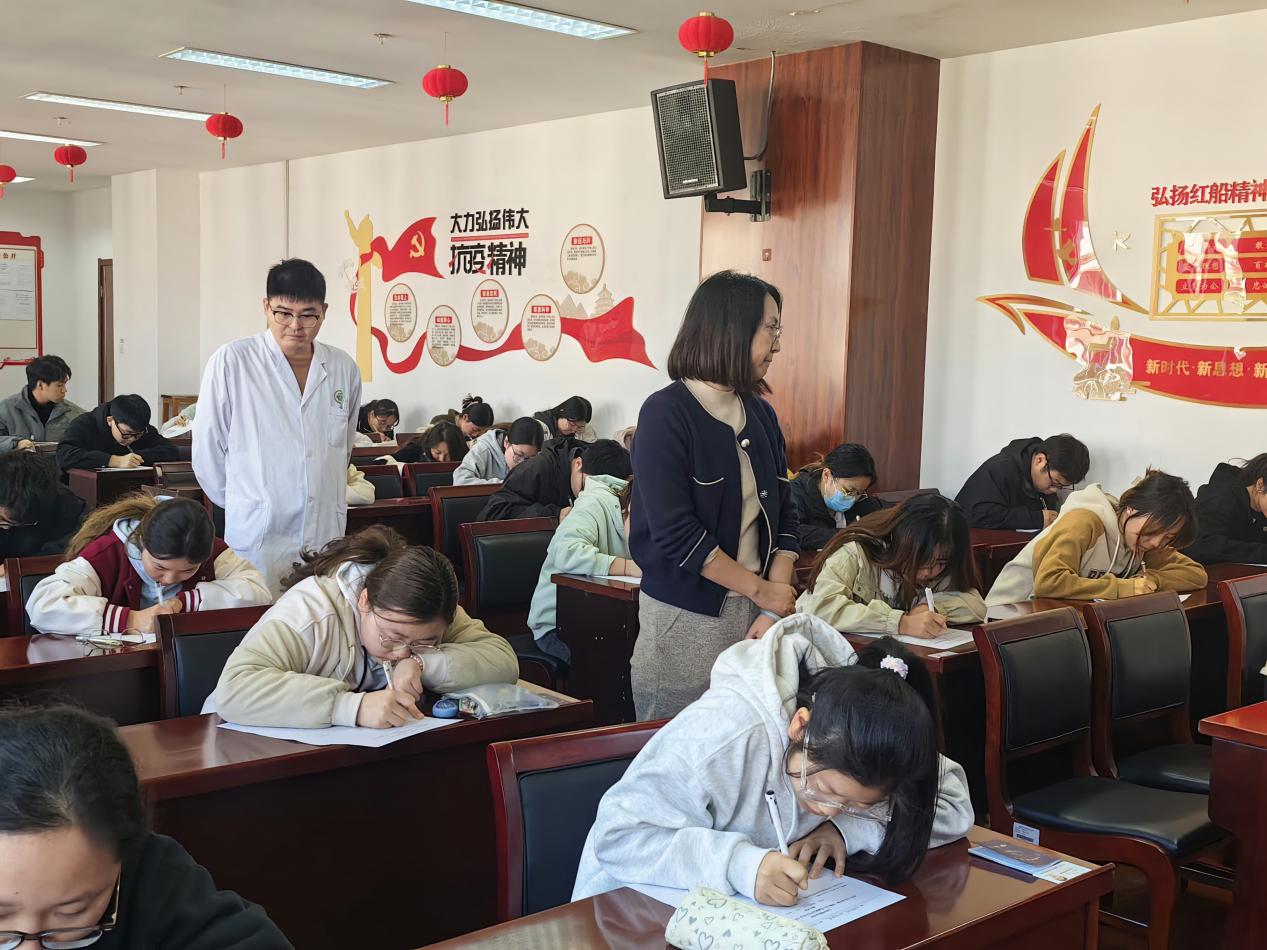期间,邹颖一行听取了镇江中西医结合医院驻点教学负责人关于2023级康复治疗技术3班教学和学生管理的介绍,实地查看期中考试安排及监考情况,组织召开学生座谈会,了解学生学习、生活及思想动态。刘毅一行在金湖县人民医院走访学生宿舍、教室和实训室,推门听课,督导驻点教学教师上课和检查上课“六个一”准备情况,陈银老师与班级学生谈话,询问学生诉求,及时为学生排忧解难。