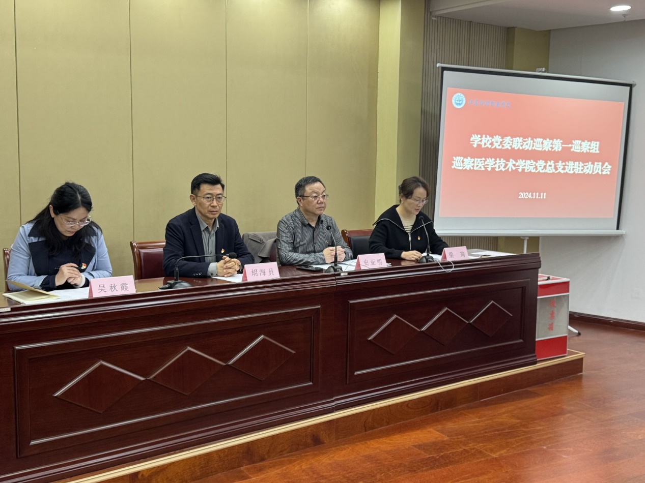 根据巡视巡察上下联动工作部署和学校党委2024年校内巡察安排,党委第一巡察组组长史亚明同志就开展好医学技术学院党总支联动巡察工作讲了三点意见:一是提高政治站位,深刻领会政治巡察要义。习近平总书记在党的二十届三中全会上强调,要健全全面从严治党体系,深入推进党风廉政建设和反腐败斗争,扎实做好巡视工作。在10月14日召开的省委第十二巡视组巡视学校党委工作动员会上,省委第十二巡视组副组长周宏斌同志指出,巡视是推进党的自我革命、全面从严治党的战略性制度安排。省委部署安排对省属高校党委开展政治巡视,就是要以强有力的政治监督推动省属高校扎实履行职责使命,以高等教育高质量发展助推中国式现代化江苏新实践。二是强化担当意识,深入开展政治巡察监督。明确围绕巡察工作“四个落实”“四个紧扣”监督重点和巡视巡察上下联动工作要求,加强对省委巡视整改、上届学校党委巡察整改、审计监督发现问题以及主题教育检视问题等整改情况的监督检查,查找政治偏差,深化政治巡察,针对不同部门的不同性质、职能、特点,查找发现问题。三是凝聚责任共识,切实增强巡察监督质效,希望医学技术学院党总支本着对党的事业高度负责的态度,敢于直面问题,自觉接受监督,全力配合、积极落实好各项工作任务,确保巡察工作顺利进行。史亚明强调,联动巡察组将认真落实巡视巡察上下联动工作要求,明纪律、讲规矩、重程序,严格按照巡察授权的范围、权限和方式规范开展监督。